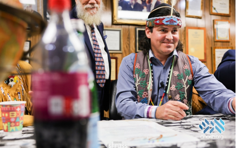 The building, long recognized within the Jewish community as a place of gathering, teaching, and memory, was approached not as a stage, but as a house to be entered with respect. The Chief observed first, listening to the rhythm of the space before speaking, in accordance with O’Jiibwaay law, which teaches that one must understand the ground before placing a foot upon it.